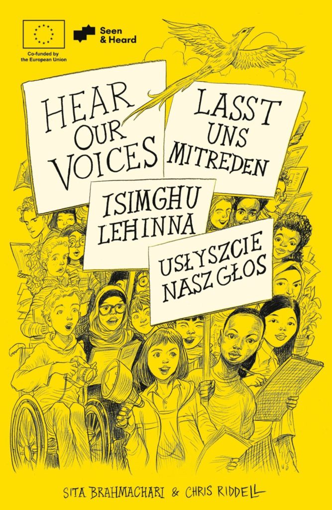„Usłyszcie nasz głos” to wyjątkowa książka dla dzieci, która powstała w ramach międzynarodowego projektu Seen and Heard. W warsztatach organizowanych na Malcie, w Polsce i w Niemczech wzięło udział ponad 600 dzieci z ponad 50 krajów. Podczas spotkań rozmawiały o wolności wypowiedzi, prawie do protestu i prawach dziecka, dzieląc się swoimi doświadczeniami oraz wizją bardziej sprawiedliwego świata. Na podstawie ich słów brytyjska pisarka Sita Brahmachari stworzyła wspólny wiersz, zilustrowany przez Chrisa Riddella.