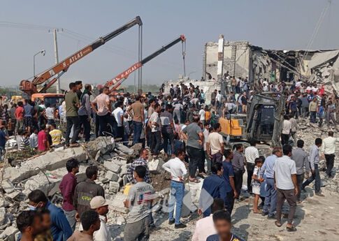 Charakterystyczne spłaszczenie dachu świadczy o tym, że doszło do uderzenia z powietrza, które zniszczyło znaczną część budynku.